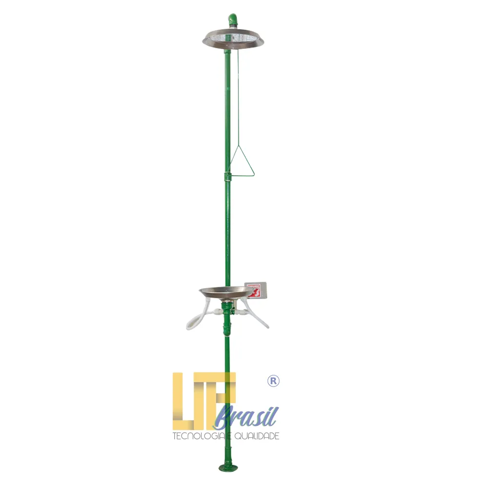 - Chuveiro - Acionamento manual comandado por puxador e válvula com passagem de água plena. - Montagem fixada diretamente no chão. - Ducha fabricada em ABS ou Aço Inox AISI Inox 304 desmontável de fácil higienização com vazão de 120 litros de água por minuto.