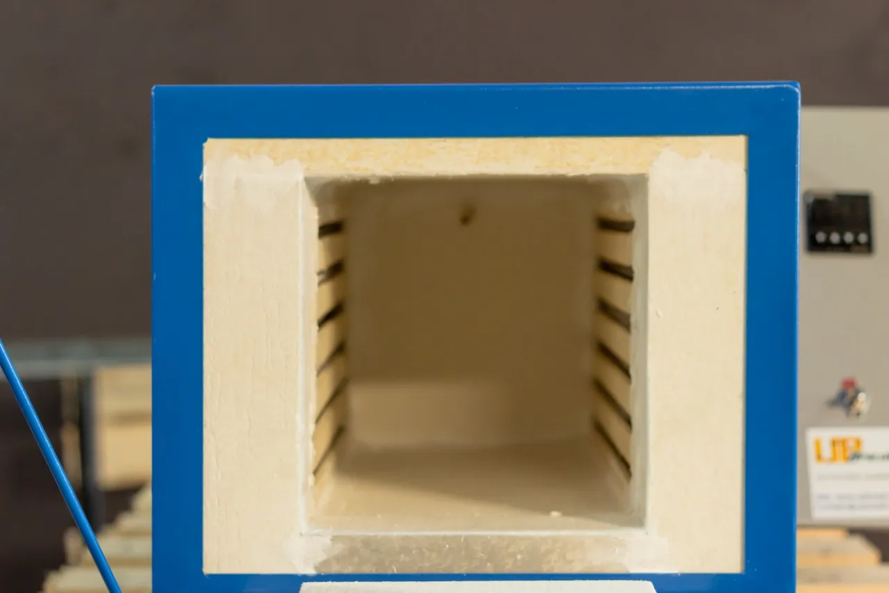 - Forno Mufla confeccionado em chapa de aço tratada com revestimento em epóxi eletrostático - Isolação perfeita por tijolos isolantes evitando o aquecimento da parte exterior - Painel de comando na lateral. - Resistências de fio kanthal a 1, embutidas em refratários de alta percentagem de alumina - Porta com contrapeso e abertura tipo bandeja para proteger eventual queda de material quente no operador. - Controlador eletrônico microprocessado de temperatura com precisão ± 7ºC. - Indicação digital da temperatura programável com as funções de: set point display simples sendo que o verde é para a programação e o vermelho para a indicação - Indicação digital da temperatura com precisão de ±7ºC - Resolução de 1 em 1ºC. - Sensor de temperatura tipo “k”. - Temperatura máxima de trabalho 1200ºC. - Faixa de trabalho entre 0 e 1200ºC. - Alimentação pode ser em 220 volts, 380 volts, 440 volts trifásico. - Medidas: 15x15x30cm - Potencia 3500 wats