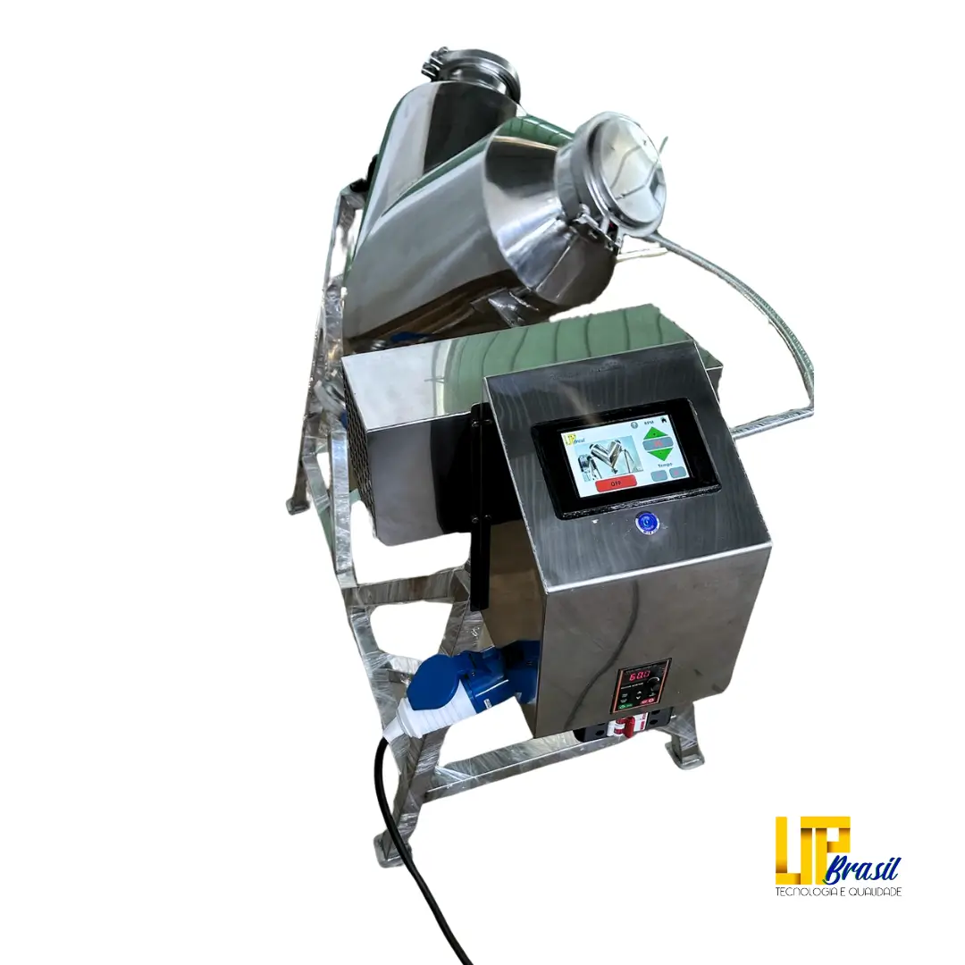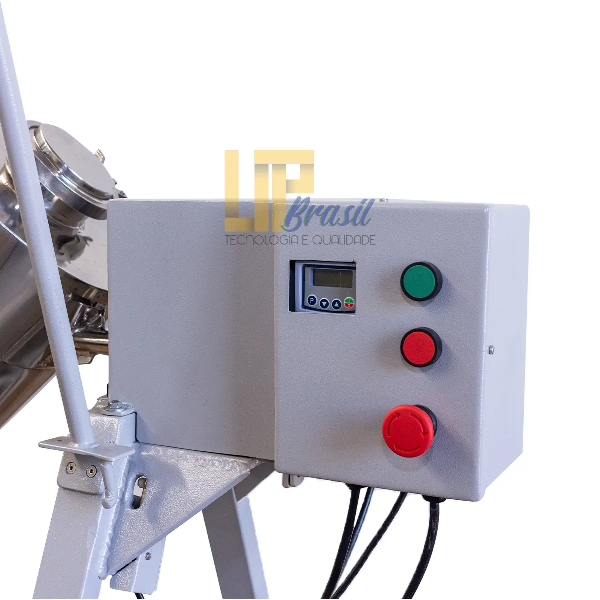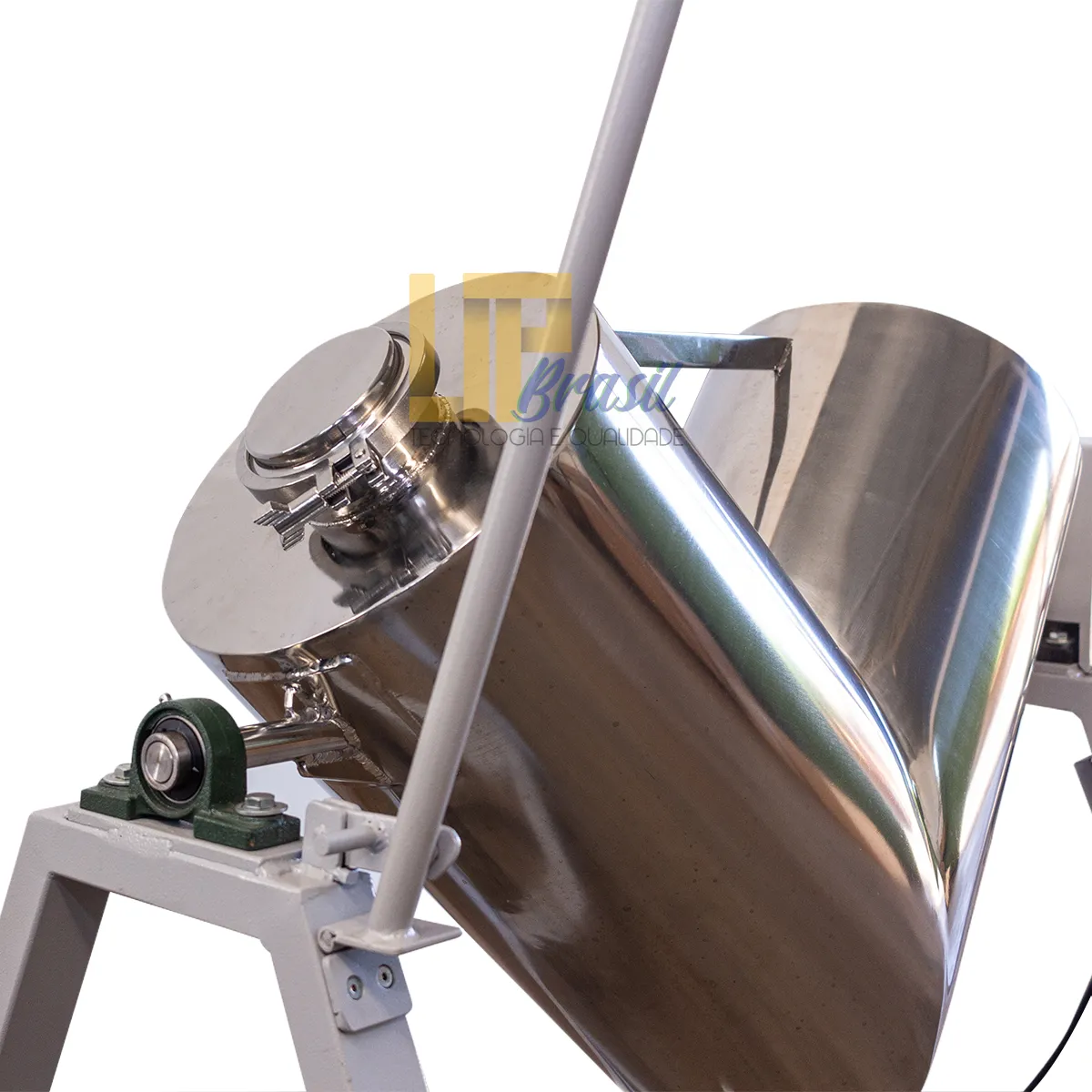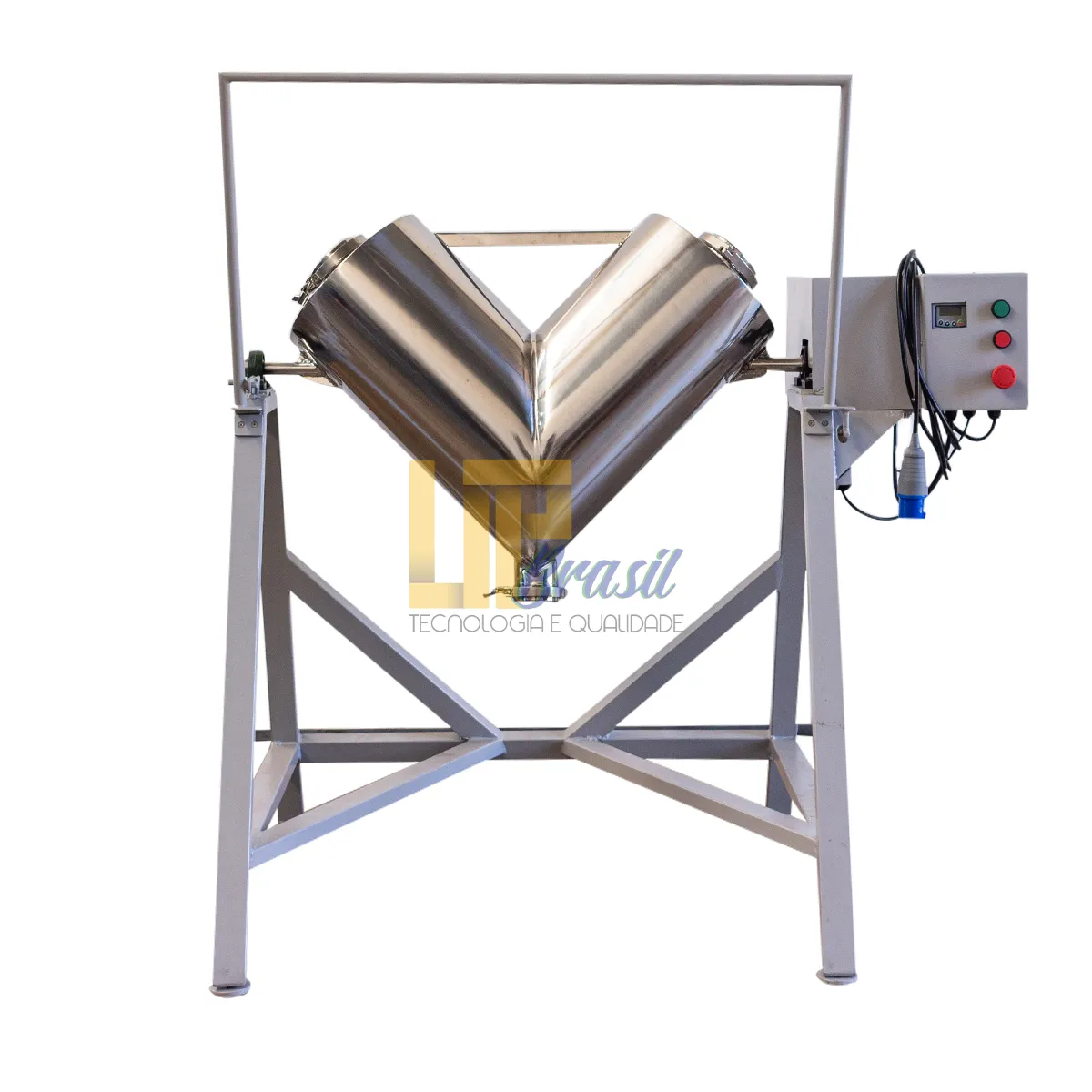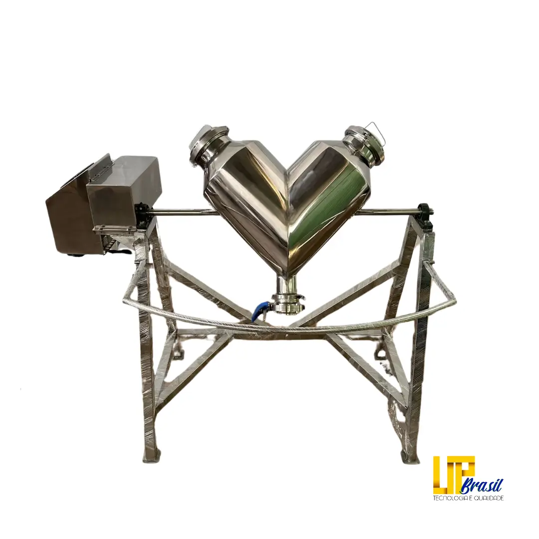 - Construído sob medida para atender às suas necessidades, nosso misturador em V apresenta uma estrutura metálica em aço 1020 com pintura eletrostática anti-corrosiva. Sua câmara é feita de aço inoxidável com acabamento sanitário, garantindo a máxima higiene. O equipamento possui três tampas: duas do tipo tampão e uma de descarga tipo guilhotina, proporcionando facilidade no processo.