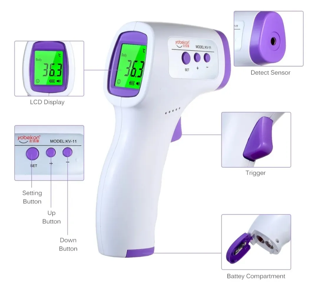 - A testa infravermelha digital portátil características de fácil operação de alta precisão teste/objeto duplo modo de alerta de febre de 2 segundos resposta rápida de 3 cores de segurança sem contato medição automática de desligamento etc Adequado para medir a temperatura de crianças crianças crianças e adultos em casa ou qualquer outro público Places.